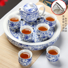 景德镇青花玲珑功夫茶具 套装陶瓷蜂窝镂空茶海整套茶壶茶杯配件