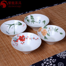 手绘功夫茶杯陶瓷青花瓷品茗杯斗笠主人杯单杯茶盏茶具建盏茶碗