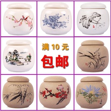 小号青花陶瓷茶叶罐 紫砂粗陶冰裂罐药罐老岩泥冰裂功夫茶具配件