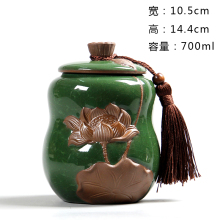 粗陶茶叶罐陶瓷普洱冰裂紫砂茶叶罐青花瓷储物罐哥窑功夫茶具配件