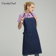 新款韩版时尚牛仔围裙全棉长款挂脖围腰男女短款小围裙餐饮工作服