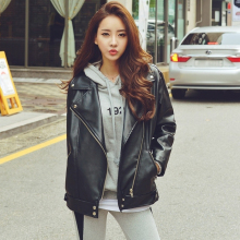 2017新款机车皮外套女式皮衣宽松大码皮夹克长袖翻领上衣小外套潮