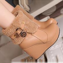 短靴子女士新款鞋子包邮春秋2017坡跟超高跟韩版学生大小码毛毛靴
