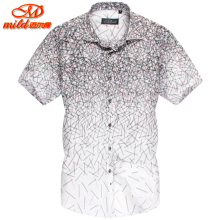 夏装新品男士短袖衬衫薄款纯棉碎花印花潮衬衣休闲修身寸衫
