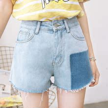 2017春夏新款韩版学生中高腰微宽松卷边浅蓝牛仔短裤女沙滩热裤潮