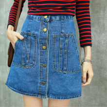 2017夏季新品韩版排扣高腰深蓝色牛仔裙女A字裙半身裙短裙女裙裤