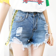 2017夏季新款不规则学生破洞牛仔短裤女毛边高腰个性短裤女热裤子