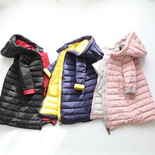 儿童长款羽绒服 乐乐的衣柜2016冬 撞色翻边中长款羽绒服 百搭