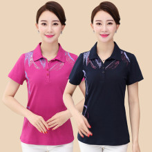 夏季新款中年女士全棉运动T恤大码妈妈装翻领上衣短袖polo休闲衫