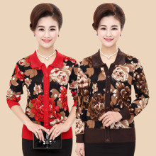 春季新品中老年女装针织衫大码妈妈装薄款开衫老年人翻领针织外套