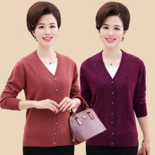 秋冬新款中年女装针织衫大码妈妈装V领开衫中老年40-50岁针织外套