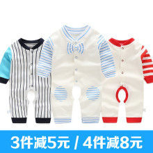 婴儿连体衣服新生儿三角 哈衣 长袖爬服装男女宝宝爬行服夏季纯棉