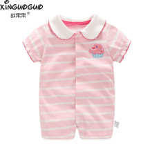 2015年新款粉色条纹婴儿连体衣夏季短袖爬服宝宝哈衣纯棉连身衣