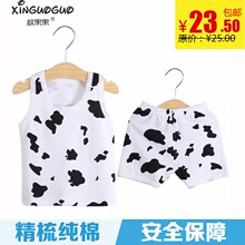 宝宝夏装新款男童女童装婴儿童衣服装2016年春装背心短裤套装奶牛