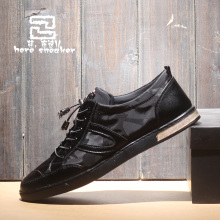 板鞋男黑色英伦风男鞋迷彩暗印花潮男潮鞋2016新品时尚男鞋走秀款