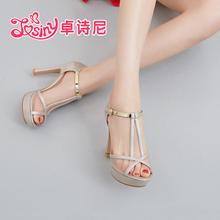 卓诗尼2016夏季新款凉鞋女露趾超高跟鞋细跟防水台女鞋162637120
