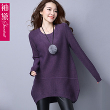 2016春秋装圆领套头毛衣女针织衫打底衫韩版中长款大码宽松外套潮