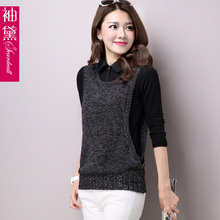 2016秋装针织衫背心衬衫两件套宽松套头短款打底衫娃娃领毛衣女潮
