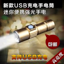 强光手电筒USB可充电迷你远射伸缩变焦超亮家用防水防身打猎袖珍