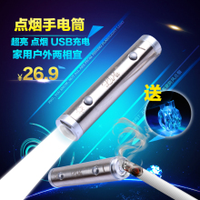 led小手电筒超亮强光USB充电户外远射点烟器家用迷你骑行防身医用