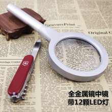 B'BOX高清铝合金10倍-20倍阅读手持放大镜带12LED灯老人看书看报