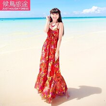 海滩裙沙滩裙女夏2017新款雪纺吊带连衣裙波西米亚长裙海边度假