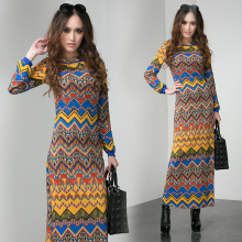长袖连衣裙2017夏季新款民族风印花波西米亚长裙海岛旅游沙滩裙女