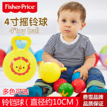 费雪4寸手柄球摇铃球铃铛球婴儿玩具3-6-12个月宝宝手抓球皮球