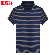 恒源祥夏季中老年翻领爸爸短袖t恤男条纹polo衫中年人商务爸爸装