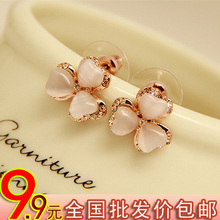H068韩版三瓣花时尚猫眼石耳钉多彩镶钻 女耳环耳饰女精品包邮