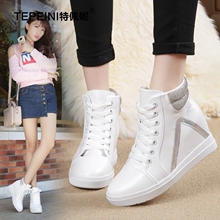 特佩妮隐形内增高女鞋白色运动鞋女春秋水钻韩版高帮鞋休闲鞋单鞋