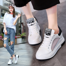 特佩妮2017夏季韩版内增高女鞋厚底坡跟休闲鞋网纱小白鞋系带单鞋