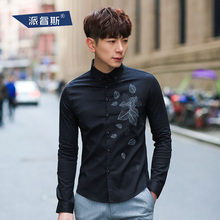 2017春季新款印花衬衣男韩版潮流长袖男衬衫修身时尚男装休闲上衣