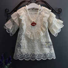 2016夏装新款童装蕾丝绣花T恤宝宝背心上衣两件套装儿童花边裙衫
