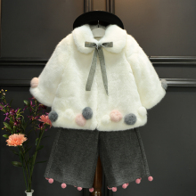 新年装女童白色仿皮草外套冬装新款儿童七分袖加厚上衣宝宝童装