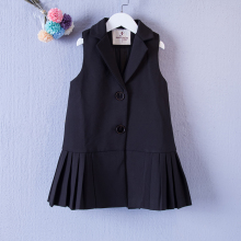 2016秋装新款童装长款黑色马甲外套宝宝百褶裙衫女童V领无袖上衣
