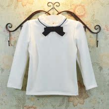 白色女童加绒打底衫蕾丝花边儿童加厚T恤蝴蝶结150大童童装冬装