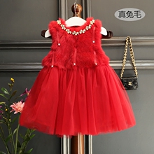 2016冬装新款童装宝宝真兔毛毛连衣裙女童网纱背心裙儿童加绒裙子