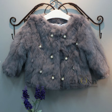 2016冬装新款儿童装浅灰皮草外套女童宝宝夹棉真兔毛短款粉色上衣