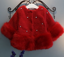 2016冬装新款儿童装女童红色短款大衣宝宝狐狸毛七分袖仿皮草外套
