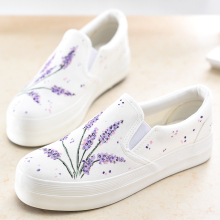 卜丁手绘鞋小清新白色帆布鞋松糕厚底女鞋韩版花朵布鞋学生平底鞋