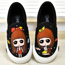 女童帆布鞋儿童布鞋涂鸦手绘鞋宝宝板鞋女孩休闲鞋一脚蹬童鞋春秋