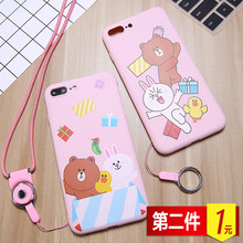 可爱卡通韩国布朗熊iPhone6s手机壳女苹果6plus挂绳防摔硅胶粉色