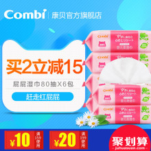 combi康贝婴儿湿巾屁屁专用湿纸巾80抽6包宝宝绵柔巾儿童无味纸巾