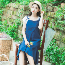 2017夏季新款韩版女装 宽松小清新甜美无袖A字紧身孕妇雪纺连衣裙