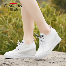 澳伦女鞋2017春新款乐福鞋女圆头休闲鞋系带内增高真皮女单鞋