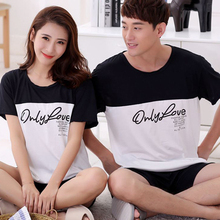 夏季韩版情侣睡衣女士纯棉短袖家居服夏装莫代尔套装男夏天居家服