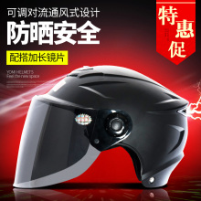 摩托车头盔电动车头盔男女夏季四季半盔半覆式双镜片防晒安全帽