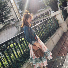 绵羊er 秋装高端气质长款度假飘逸雪纺印花连衣裙仙女裙VM54067