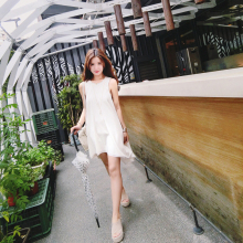 绵羊er 秋装女无袖吊带背心上衣白色雪纺连衣裙短裙打底裙VM62027
